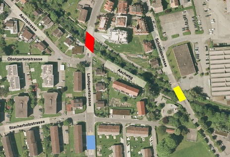 Auf der Fahrbahn der Landquartstrasse stadteinwärts sind auf Höhe Aachbrücke Belagsschäden festgestellt worden: Dort eingelassene Steine sind lose und müssen entfernt werden. In der Folge wird die schadhafte Stelle mittels Belag saniert. Als damaliger Bauherr koordiniert das kantonale Tiefbauamt die Arbeiten. Diese finden in der Kalenderwoche 11 (ab 12. März) statt. Die Arbeiten dauern einen Tag, sind aber witterungsabhängig. Deshalb muss kurzfristig entschieden werden, an welchem Datum die Massnahmen umgesetzt werden. Während der Arbeiten muss die Landquartstrasse auf Höhe Aachbrücke vollständig gesperrt werden (im Plan rot bezeichnet). Die Zufahrten bis zur Brücke sind jedoch gewährleistet. Am Tag der Bauarbeiten wird die Bushaltestelle Landquartstrasse (blau markiert) nicht bedient. Stattdessen halten die Busse bei der Aach an der Schöntalstrasse (gelb bezeichnet). Die Bevölkerung wird um Verständnis gebeten.