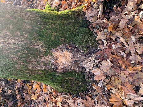 Der abgebildete Baumstamm weist am Fuss typische Zeichen der Pilzerkrankung auf.