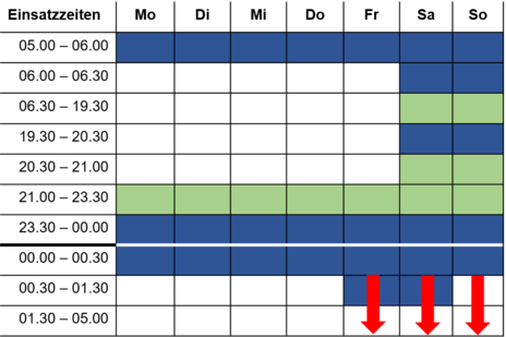 Einsatzzeiten (seit Fahrplanwechsel per Dezember 2020):